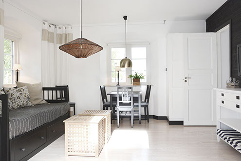 Self-service in the wing, 25 m² incl. bathroom. A room with an open floor plan.